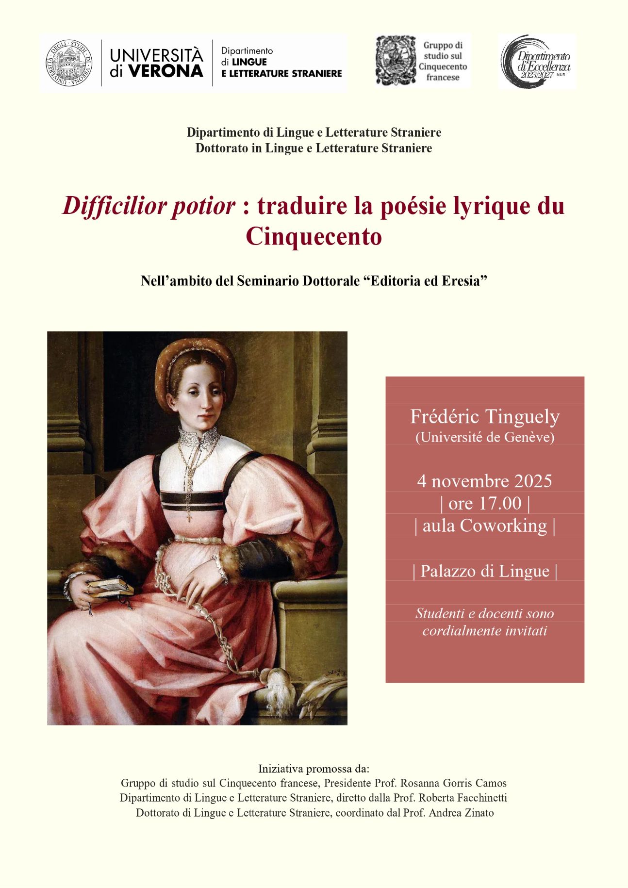 "Difficilior potior : traduire la poésie lyrique du Cinquecento". Conf. de Frédéric Tinguely (Vérone)