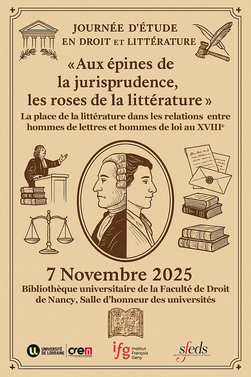 "Aux épines de la jurisprudence, les roses de la littérature". La place de la littérature dans les relations entre hommes de lettres et hommes de loi au XVIIIe siècle. Journée d’études en droit et littérature (Nancy)