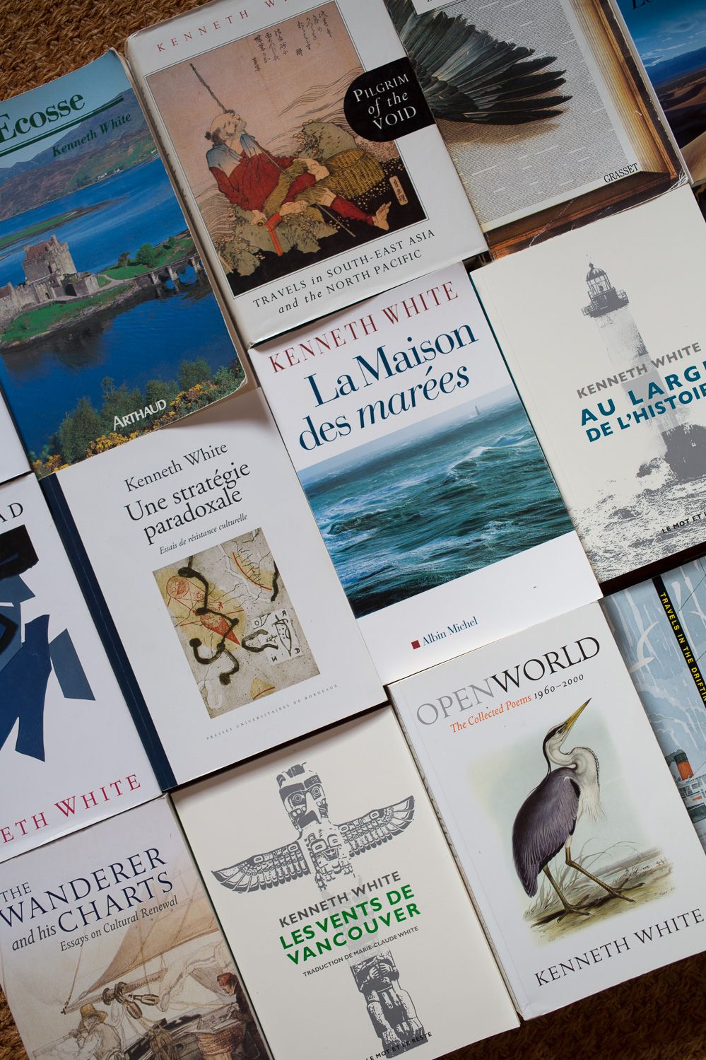On trouvera une interview de Kenneth White dans son atelier, qui présente aussi son magnifique jardin et sa maison.