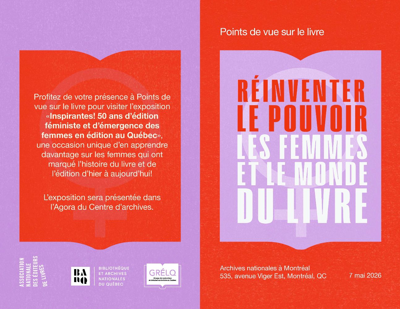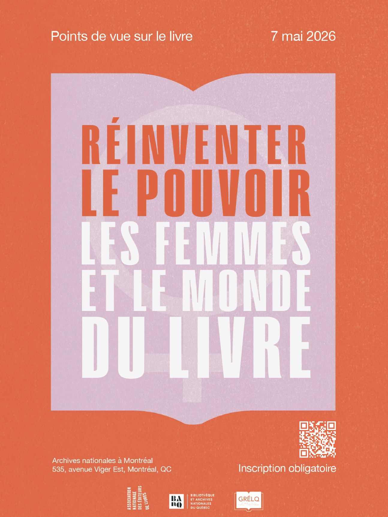 Le Groupe de recherches et d’études sur le livre au Québec (GRÉLQ), Bibliothèque et Archives nationales du Québec (BAnQ), et l’Association nationale des éditeurs de livres (ANEL) organisent une journée Points de vue sur le livre, qui aura lieu aux Archives nationales à Montréal, le 7 mai 2026, sous le thème