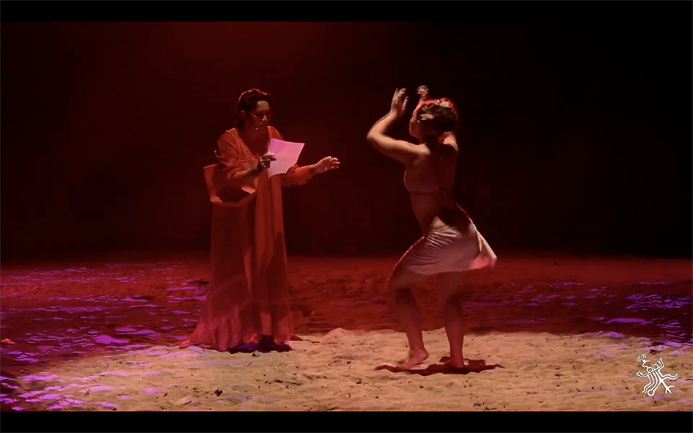 37Ainsi, pour « [d]émêler les fers barbelés des histoires assiégées » (Spitz, 2022, p. 87), le metteur en scène-chorégraphe, dans la continuité des artistes engagé·es des années 1970, fait de l’exploration formelle un formidable outil de revendication culturelle, de mise en pratique de la communauté. Comme Henri Hiro qui avant lui s’inspire du « cinéma militant27 » que l’idéal du collectif (Dreyer, 2017) et la possibilité de s’adresser à sa communauté mā’ohi en dehors d’un maintenant et d’un ici séduisent. Pīna’ina’i dépasse le cadre du simple spectacle : il engage une réflexion sur les genres artistiques, l’intermédialité et le réinvestissement culturel, tout en participant à la construction d’un récit national mā’ohi.