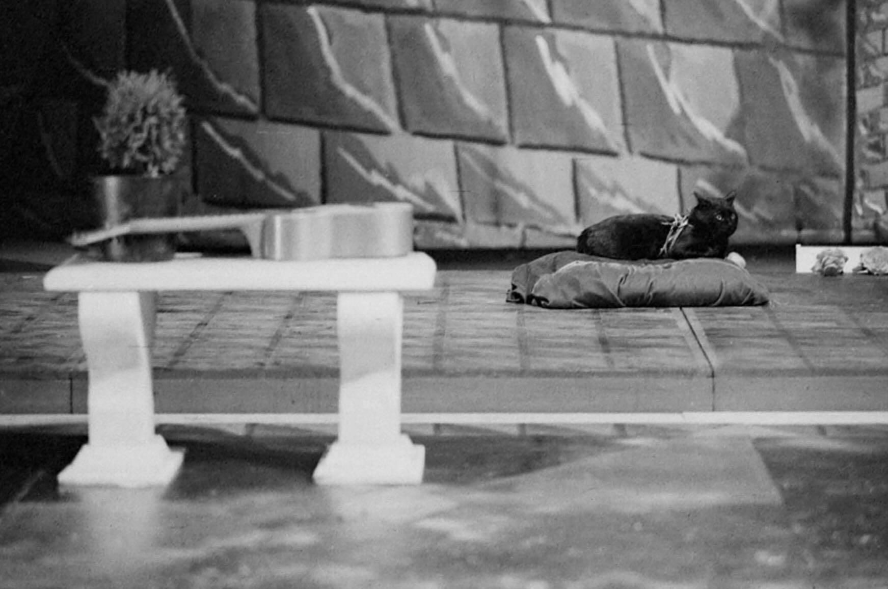 Un chat noir, dans La Pyramide ! de Copi, mise en scène de l’auteur, Paris, Théâtre Le Palace, 1975. Photographie : © Agence Marée-Breyer. Disponible sur Gallica : https://gallica.bnf.fr/ark:/12148/btv1b106044720/f11.item