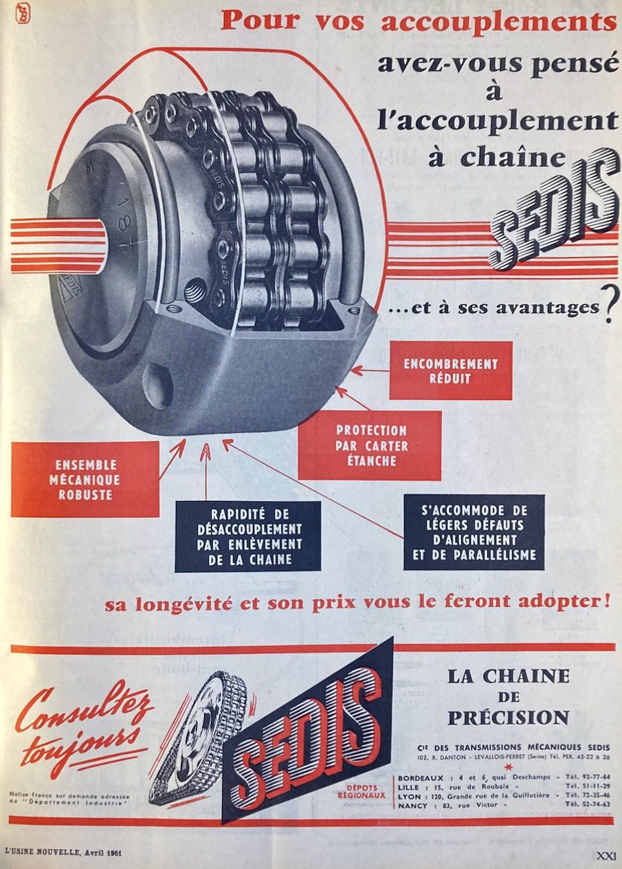 Figure 2. Publicité pour transmissions mécaniques Sedis, L’Usine nouvelle, avril 1961