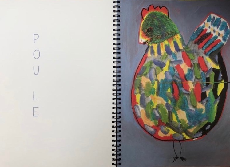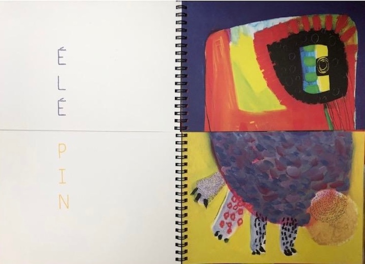9Les Animals, d’Elis Wilk (2023) est un album muni de spirales qui rendent matériellement plus faciles et plus stables les réalisations combinatoires. Il s’apparente à un imagier pour tout jeune lecteur dont l’un des principes consiste à associer une représentation visuelle et le nom de la chose représentée. L’album présente quatorze figures d’animaux dont certaines font partie de l’univers enfantin (poule, lapin, cheval, éléphant, girafe) ou plus rares (lycaon) et leur nom, ce qui, par le jeu des pages découpées en deux à l’horizontale, permet de représenter selon le principe mathématique du pêle-mêle, 196 figures animales (14 x14) dont 182 animaux inédits (196 - 14). Son titre pourrait être un clin d’œil au pluriel récalcitrant des noms en « -al » dans le langage du jeune lecteur, mais aussi à sa capacité logique et grammaticale d’engendrement de formes possibles, mais inexistantes. C’est bien aussi à stimuler cette capacité d’engendrement que l’album invite par son dispositif même4.
