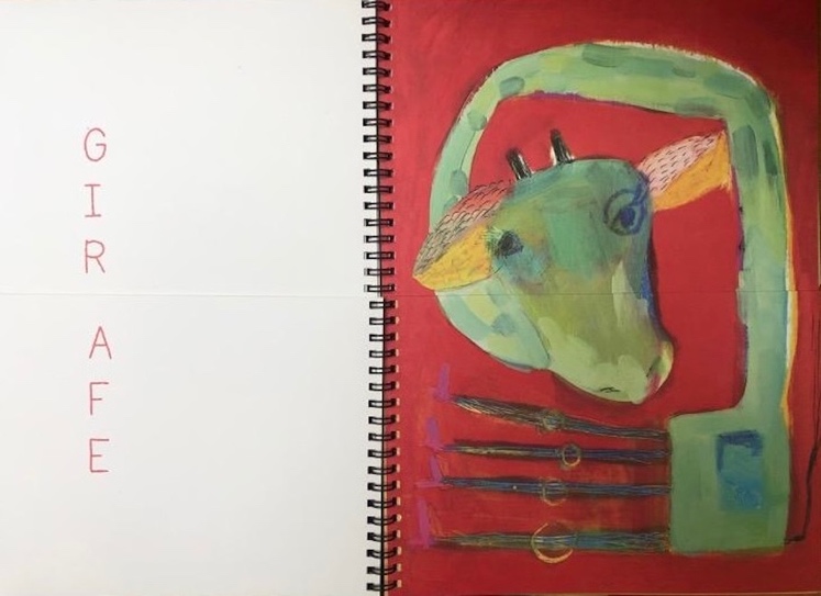 13La plupart des bestiaires présentés dans la première partie, on l’a vu, joue sur un plaisir taxinomique, à partir de mots-valises – plaisir qui se double d’un jeu sur la composition ou l’hybridation visuelle, à partir de ce que l’on a appelé des images-valises ou animages, qui est parfois le fait du seul créateur, parfois celui du lecteur : ils visent un plaisir linguistique et plastique indéniable qui peut aller du pur amusement à la sidération. Certains d’entre eux constituent, pour les jeunes lecteurs, une véritable expérience des pouvoirs ou des pièges de la représentation. Ainsi certains pêles-mêles du corpus sont avant tout une initiation artistique. De fait, l’album Les Animals, invite les tout jeunes lecteurs à partir de 3 ans à découvrir par le jeu des tournes de pans de pages le plaisir tout démiurgique de créer de nouvelles figures animales et d’en imaginer le nom. D’emblée, on voit que la création plastique prime sur un quelconque désir de représentation réaliste : les couleurs éclatent dans des corps d’animaux réels qui imposent leur fantaisie chromatique. Ainsi de la poule multicolore qui semble avoir été tracée par une main enfantine, à la peinture au doigt, et dont les pattes sont particulièrement disproportionnées. Ou encore la girafe, littéralement pliée, comme si son corps était trop grand pour tenir dans la page, alors même qu’aucune proportion n’est respectée tout au long de l’album, à l’image des représentations des enfants pour qui le signe n’est pas encore arbitraire et pour qui la représentation visuelle ne se charge pas de contrainte mimétique [Figure 2, a, b]. Par ailleurs, montrer les animaux réels sous cet angle de la fantaisie finalement, rend tout aussi acceptables les animaux créés par combinatoire et donne aux tout jeunes lecteurs à faire l’expérience d’abord visuelle du pouvoir de la création par le dispositif du pêle-mêle [Figure 2. c] Une invitation sans doute aussi à imaginer d’autres hybrides encore dans une pratique plastique à venir. C’est sans doute dans un deuxième temps, et peut-être avec des enfants un peu plus aguerris aux jeux de la langue, que le nom recomposé de l’animal grâce à la tourne des demi-pages, pourra aussi relever du plaisir de l’engendrement, langagier cette fois. Une expérience en somme du pouvoir, démiurgique, de créer et de nommer.