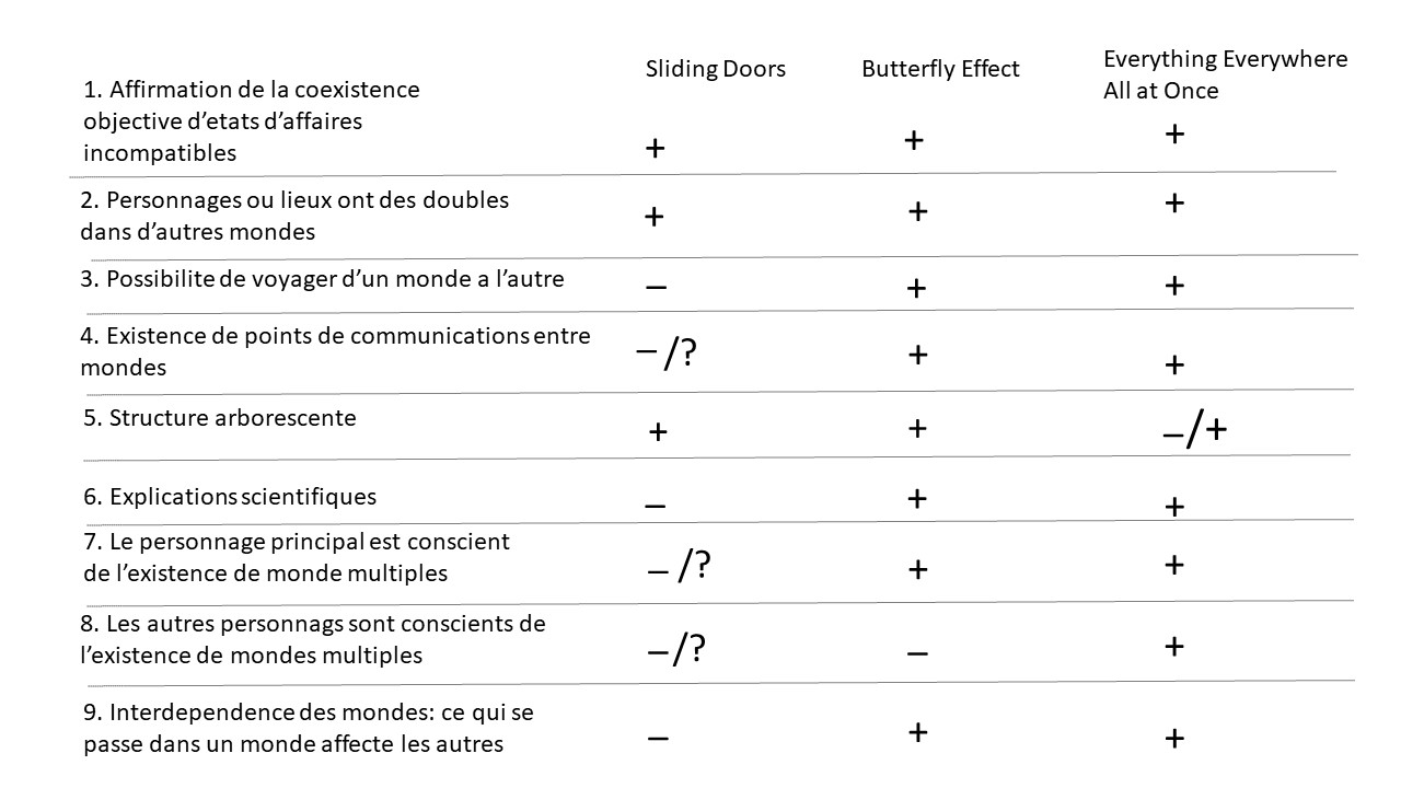 Table 1. Comparaison des trois films selon les critères de récit multivers.