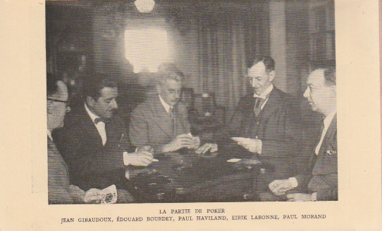 3Le père de Denise, Maurice Rémon, professeur de lettres au lycée Condorcet, est de longue date ami avec Eugène Morand, le père de Paul. Les deux familles se retrouvent régulièrement au Dépôt des marbres, dont Eugène Morand est alors le conservateur. Paul et Denise y jouent enfants, ne se quittent pas à l’adolescence, et resteront amis jusqu’au décès de Denise – « la première femme à laquelle j’ai dit Je1 », écrira bien des années plus tard Paul dans un envoi à son amie d’enfance. Lorsque le futur écrivain, lycéen fainéant et fantasque, rate son baccalauréat, son père le confie à un jeune normalien brillant, Jean Giraudoux, qui servira à Paul de répétiteur pour décrocher le diplôme à la session de septembre – ce qui se produira en effet. Très vite, Giraudoux s’incorpore au groupe des Marbres qui devient bientôt « le club des Cordeliers », du nom du bâtiment qui héberge l’école des Arts décoratifs que dirige désormais Eugène Morand. S’y réunit pour des goûters ou des dîners du dimanche soir le groupe de jeunes gens amis, Denise, Paul, Jean, Suzanne (la fille du maître verrier Lalique, autre ami d’Eugène Morand) et son mari, le porcelainier Paul Haviland, un confrère de Giraudoux, Erik Labonne, et bientôt Édouard Bourdet que Denise leur a présenté. Peu à peu chacun amorce sa vie professionnelle. Giraudoux intègre les équipes du Quai d’Orsay, suivi de près par Paul Morand qui a réussi le concours d’attaché d’ambassade, Édouard Bourdet revient au théâtre avec une nouvelle pièce, L’Homme enchaîné, Suzanne Lalique se lance dans la décoration et la peinture. Et le petit groupe conserve durant de longues années ses habitudes de dîners dominicaux, chez l’un ou l’autre, parfois au restaurant, la soirée s’achevant par une immuable partie de poker.
