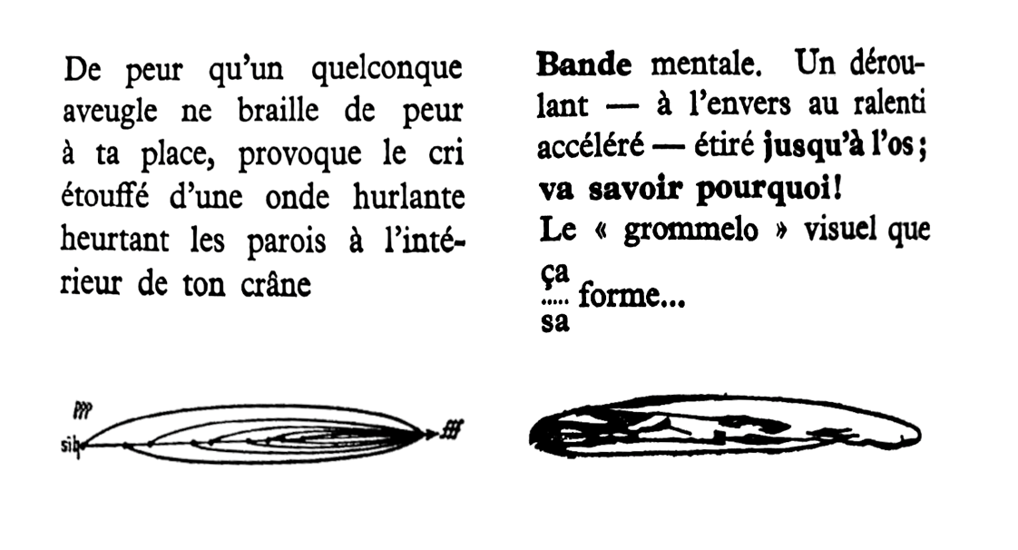 33Maurice Roche (1975, p. 106-107) fait d’ailleurs allusion, dans Opéra bouffe, au phonéticien Pierre Delattre, s’assimilant lui-même à un « enregistreur des sonorités du texte » : « Suppose-toi engin enregistreur des sonorités de textes, superposant phonogrammes delattriens oscillogrammes savants […] »
