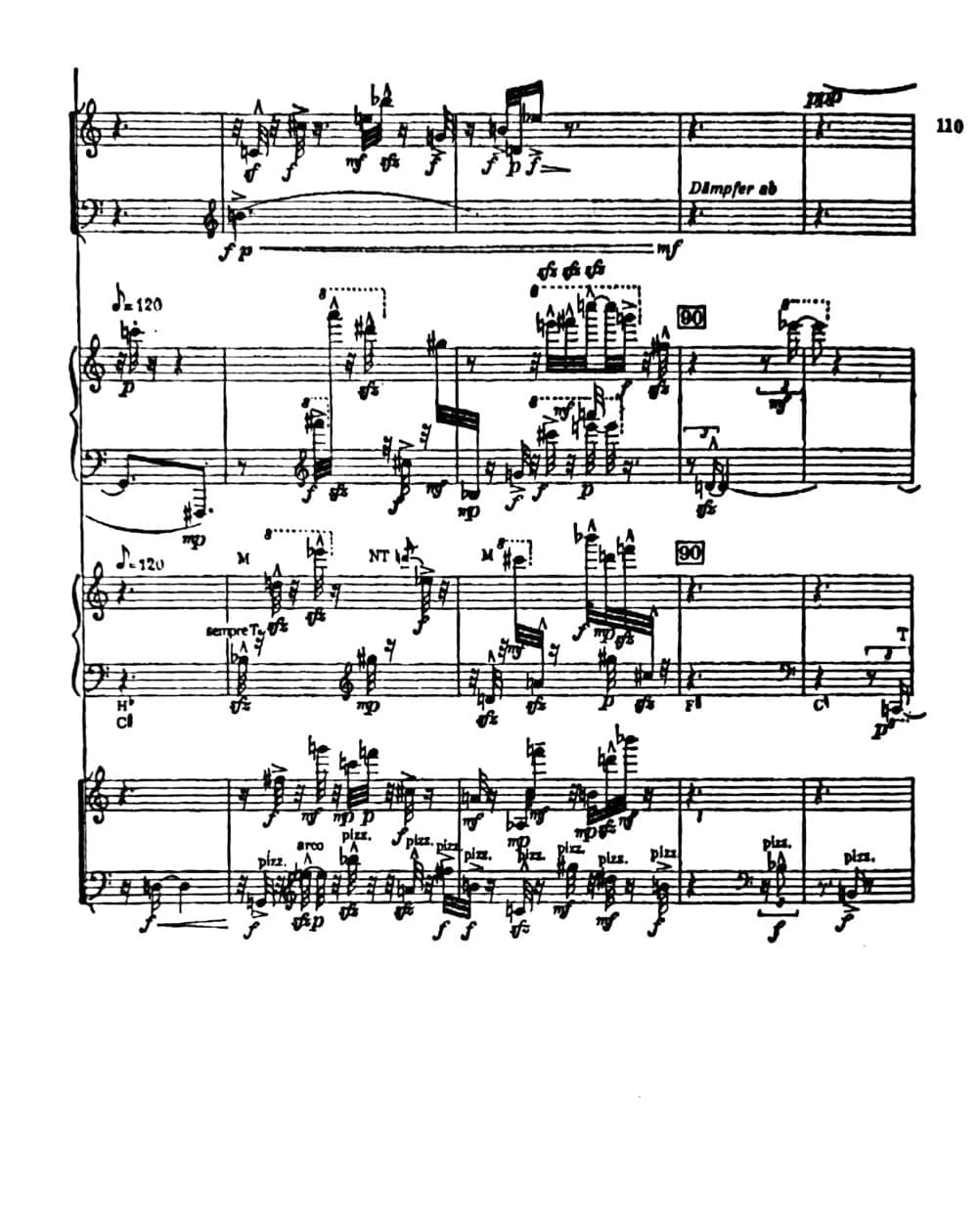 24En plus de sa fonction plastique et décorative, la partition dans les œuvres littéraires convoque immédiatement un autre régime de lecture, d’autres compétences. Qu’elle serve de document, de trace, qu’elle s’apparente à un « signal » sonore ou qu’elle entre dans la constitution d’une thématique, elle ne peut qu’interrompre le cours de la lecture, et sa linéarité. On peut ainsi émettre l’hypothèse d’une comparaison possible avec le fonctionnement de l’hypermédia permis par l’internet. Par « hypermédiatique », terme dérivé d’« hypertextuel16 », on entend un mode de circulation non linéaire dans un ensemble de données, textuelles, iconographiques, sonores ou vidéo. La partition, quelle que soit la stratégie mise en place par les auteurs, sort en effet des limites du livre, dépasse le langage verbal. Elle implique un autre rapport au temps de la lecture. De plus, avec ses différentes portées superposées destinées à être lues simultanément17, elle peut constituer le parangon d’une autre dynamique de lecture, stratifiée et synchronisée.