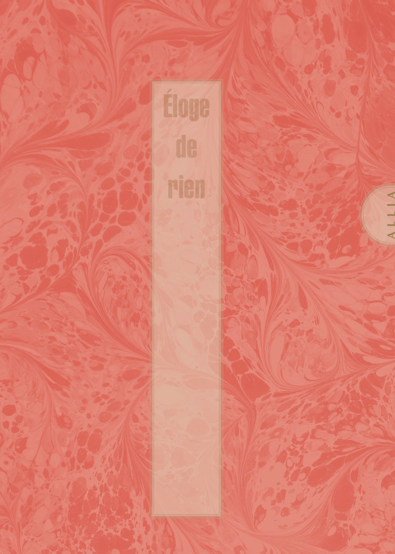 Notice de Marie Lissart et Étienne Rouziès. (Première édition : 2021) Genre littéraire particulier, initialement associé à l’oraison funèbre célébrant la vie d’une personne défunte, l’éloge n’est ici dédié à Rien. Ou bien est-il rédigé pour Rien. Ne glorifiant que le Rien, sous toutes ses formes, cet ouvrage défie le ton grave et solennel, cultive à plaisir les paradoxes. En ne chantant les louanges de Rien, l’auteur célèbre tout et Rien. Ce panégyrique pour le moins flatteur à l’adresse du v...