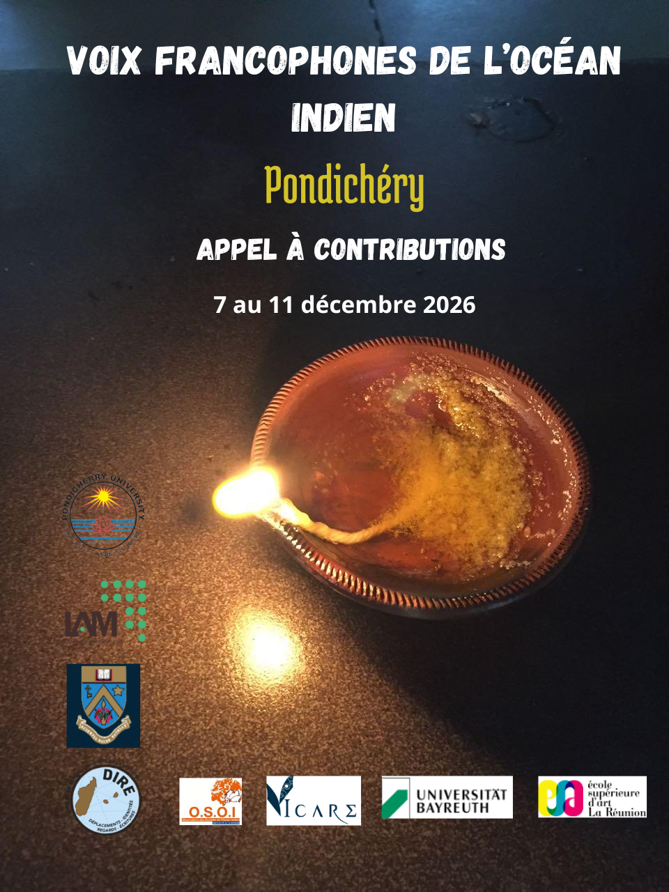 Voix francophones de l’océan indien – Textures mémorielles indiaocéaniques Comité scientifique : Mohamed Aït-Aarab (Université de La Réunion) ; Sarmila Acharif (Université de Pondichéry) ; Elara Bertho (UMR LAM) ; Pierre-Eric Fageol (Inspe/université de La Réunion ; Ute Fendler (Université de Bayreuth) ; Ari Gautier (écrivain) ; Kumari Issur (Université de Maurice) ; Sharmili Jayapal (Université de Pondichéry) ; Kamala Marius (Université Bordeaux Montaigne/UMR LAM/ Institut Français de Pond...