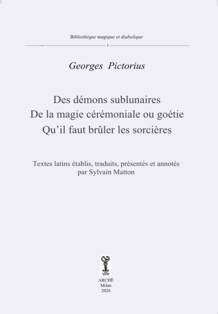 Georges Pictorius, Des démons sublunaires. De la magie cérémoniale ou goétie. Qu'il faut brûler les sorcières (trad. & éd. Sylvain Matton)